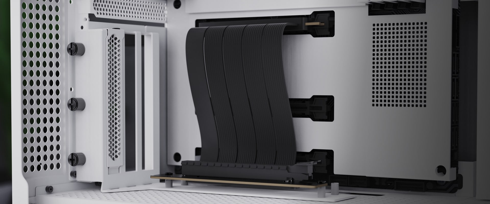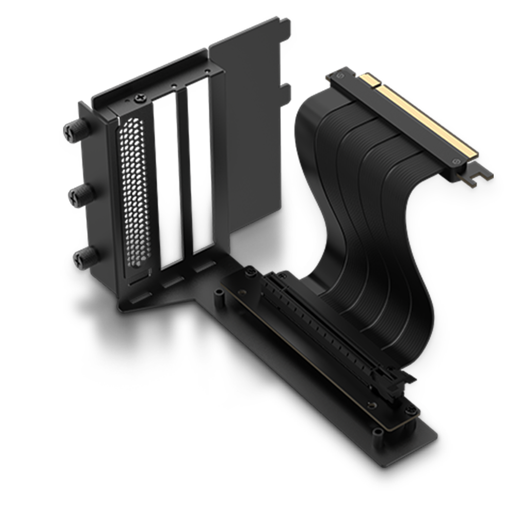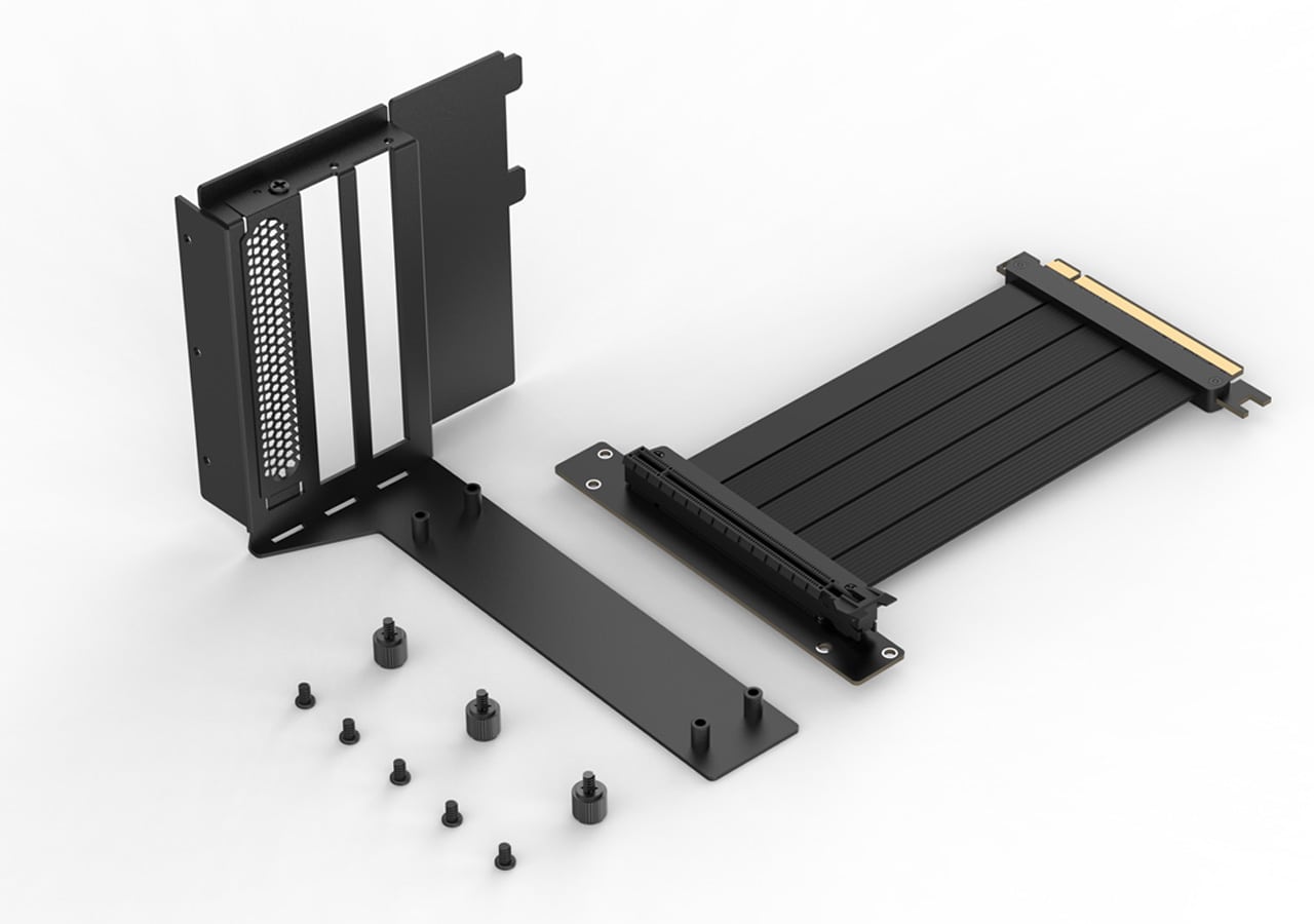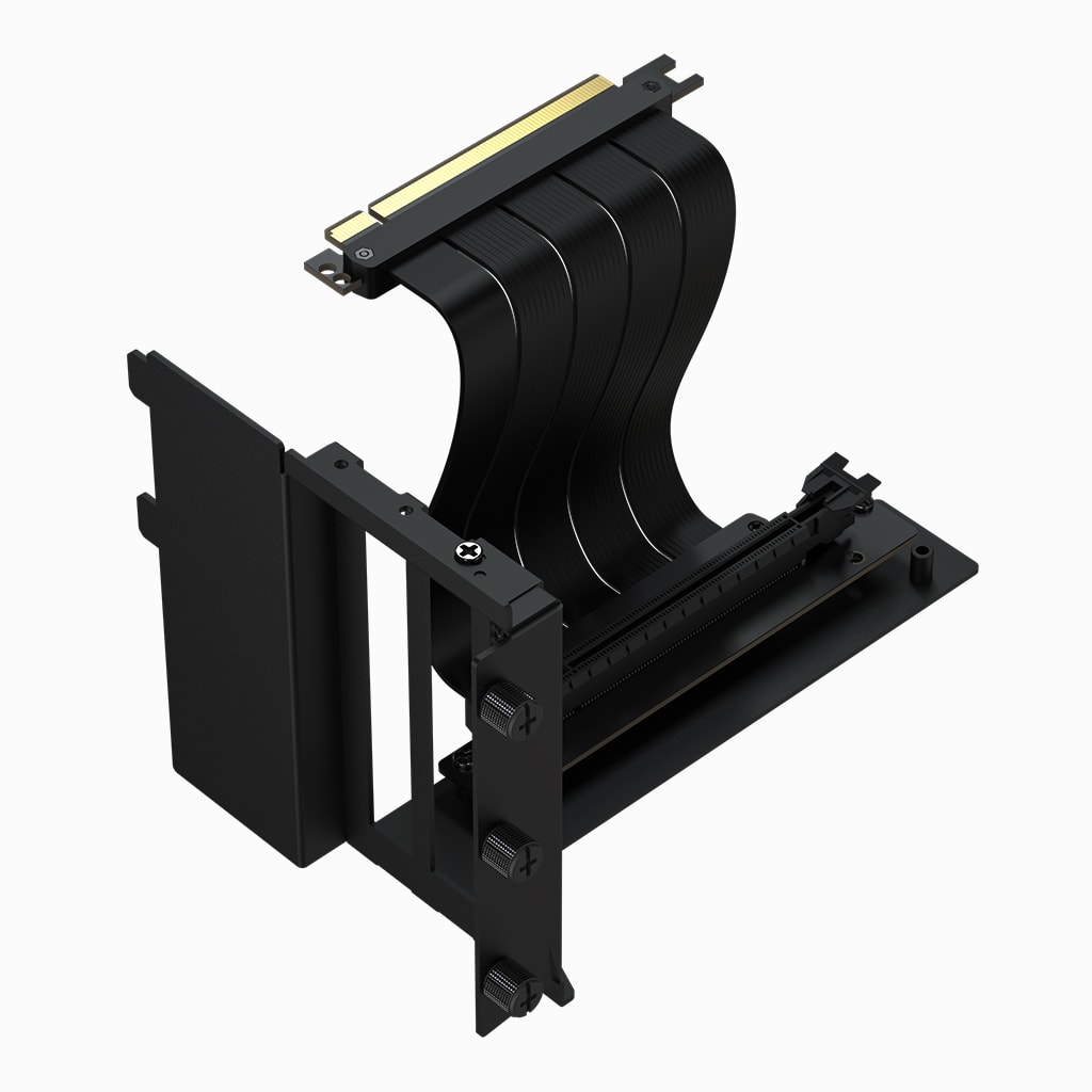 Vertical GPU Holder Kit 1 by APNX is a vertical GPU mount with an included PCI-E flat line riser cable, allowing the graphics card to run at full speed. It is steel-based for ultimate durability.